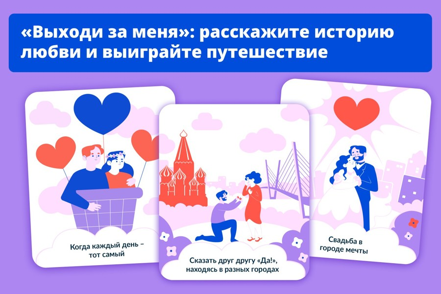 Рассказать о моменте, как появилось решение создать семью, и выиграть романтическое путешествие. Такой шанс предлагает всероссийский марафон о любви «Выходи за меня» парам, подавшим заявление о регистрации брака через портал Госуслуг.